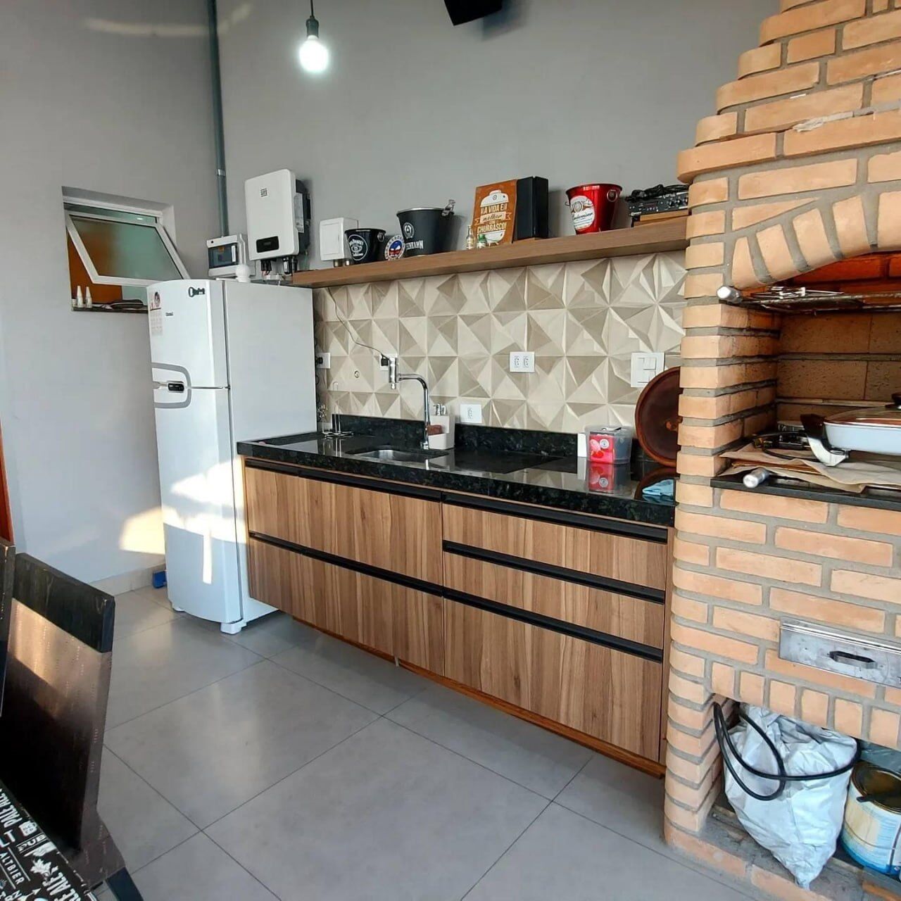 ✅ Área Gourmet com churrasqueira | pia e gabinete